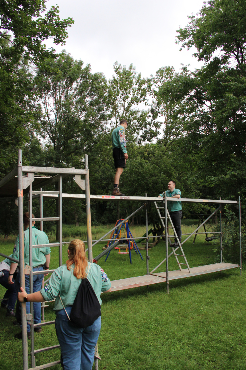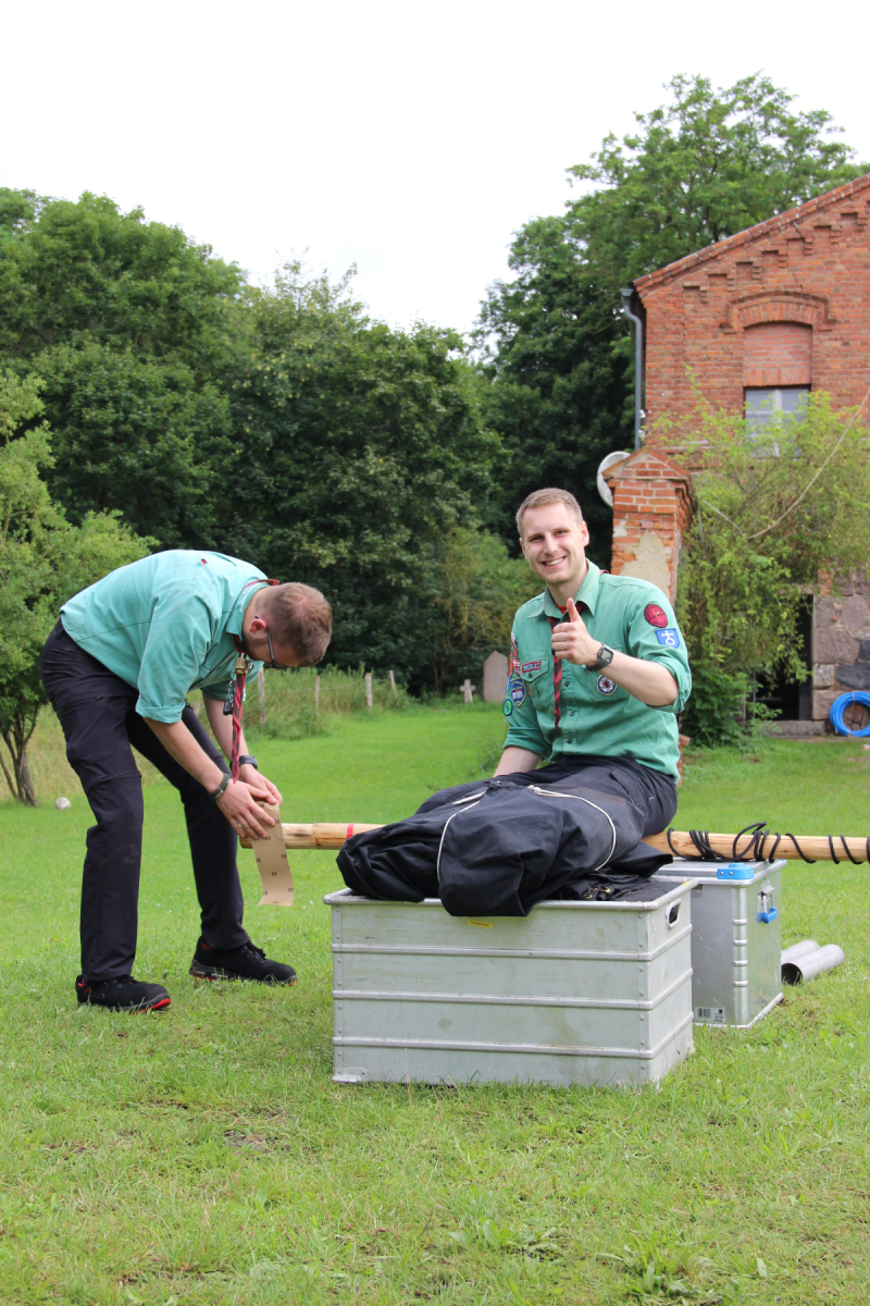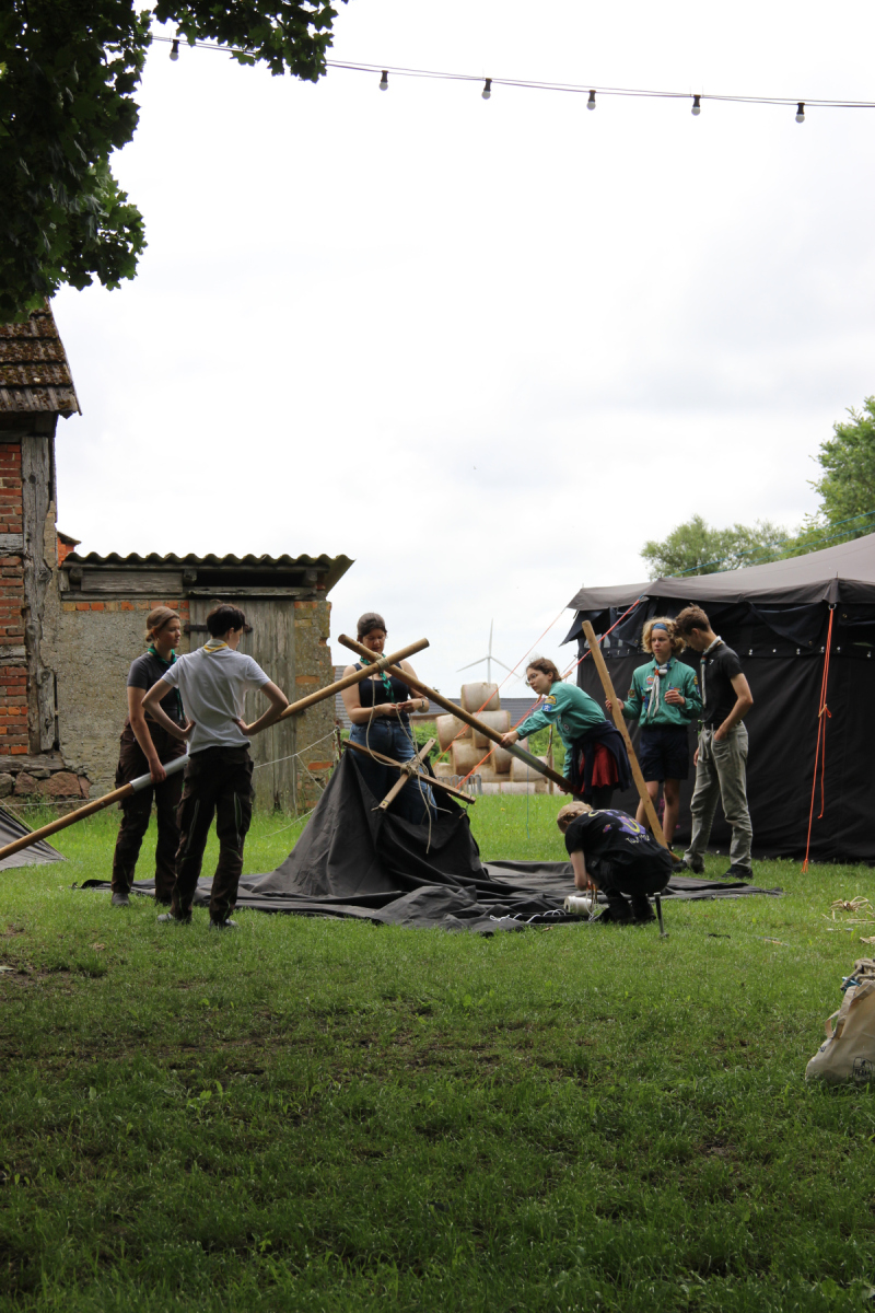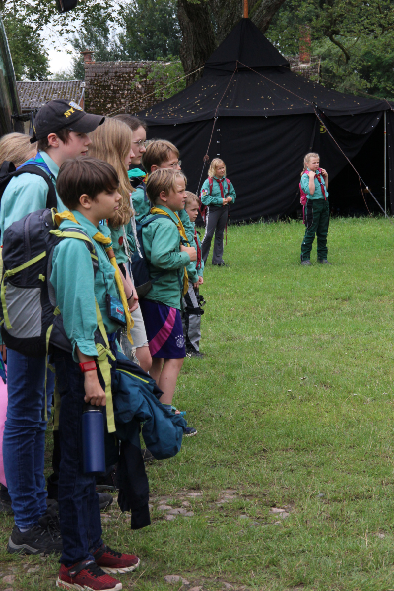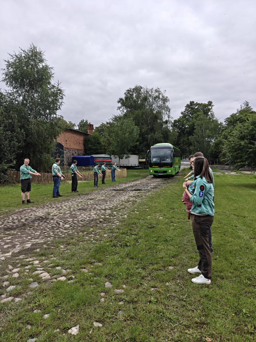 Nach dem Frühstück hat das Vorkommando fleißig die restlichen Zelte und die Bühne aufgebaut. Nach dem Aussegnungsgottesdienst in Brokstedt, an dem sowohl die Brokstedter als auch die Bugenhagener Pfadfinder teilgenommen haben, ging es für die Kinder endlich mit dem Reisebus los. 🚌