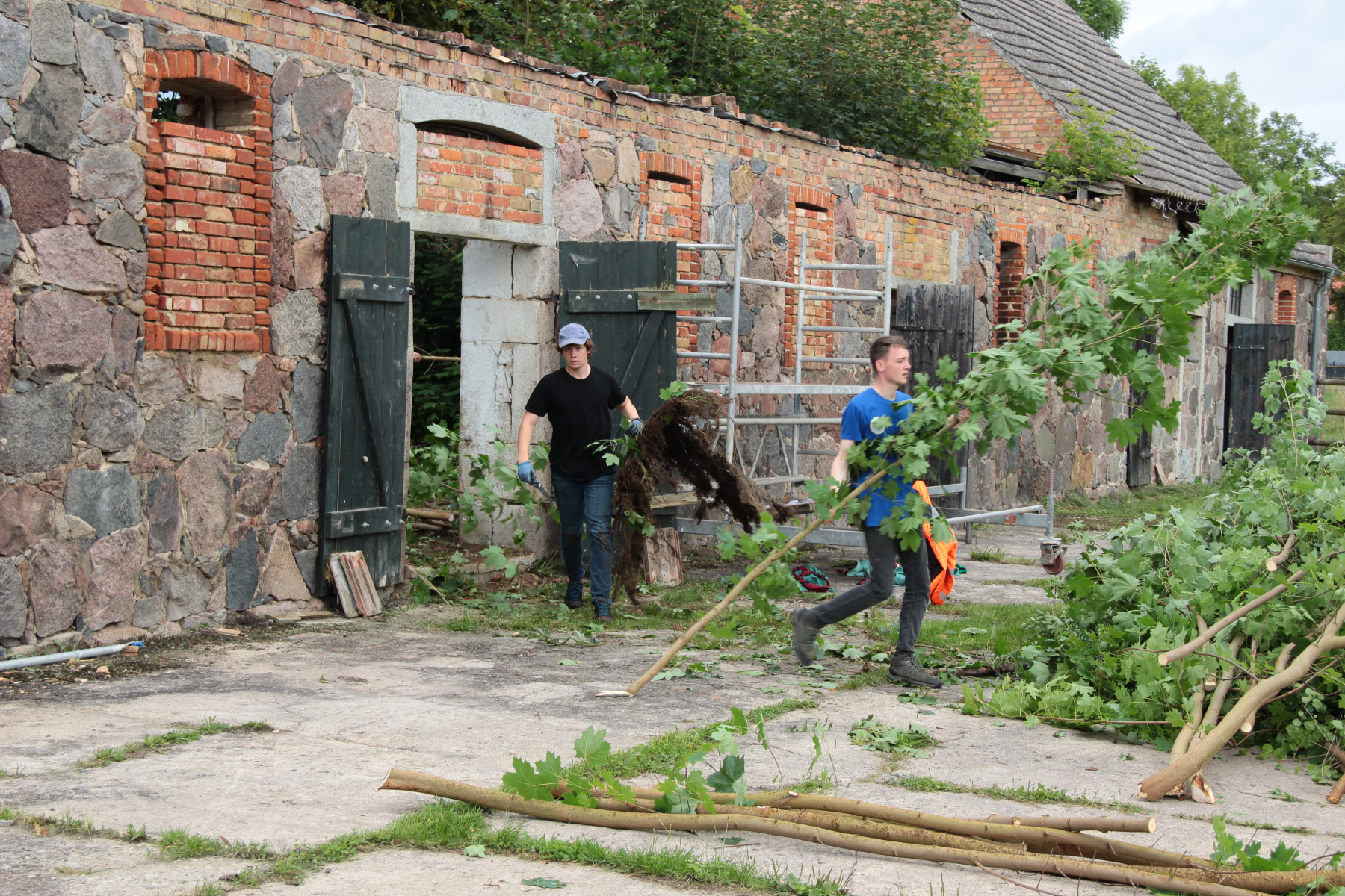 Auf Gut Schmarsow unterstützen wir tatkräftig beim Wiederaufbau des Gutes. Wir haben die alte Ruine von Bäumen befreit und verlagern das Holz in die Scheune. Der Pfadfinder hilft wo er kann ⚜️