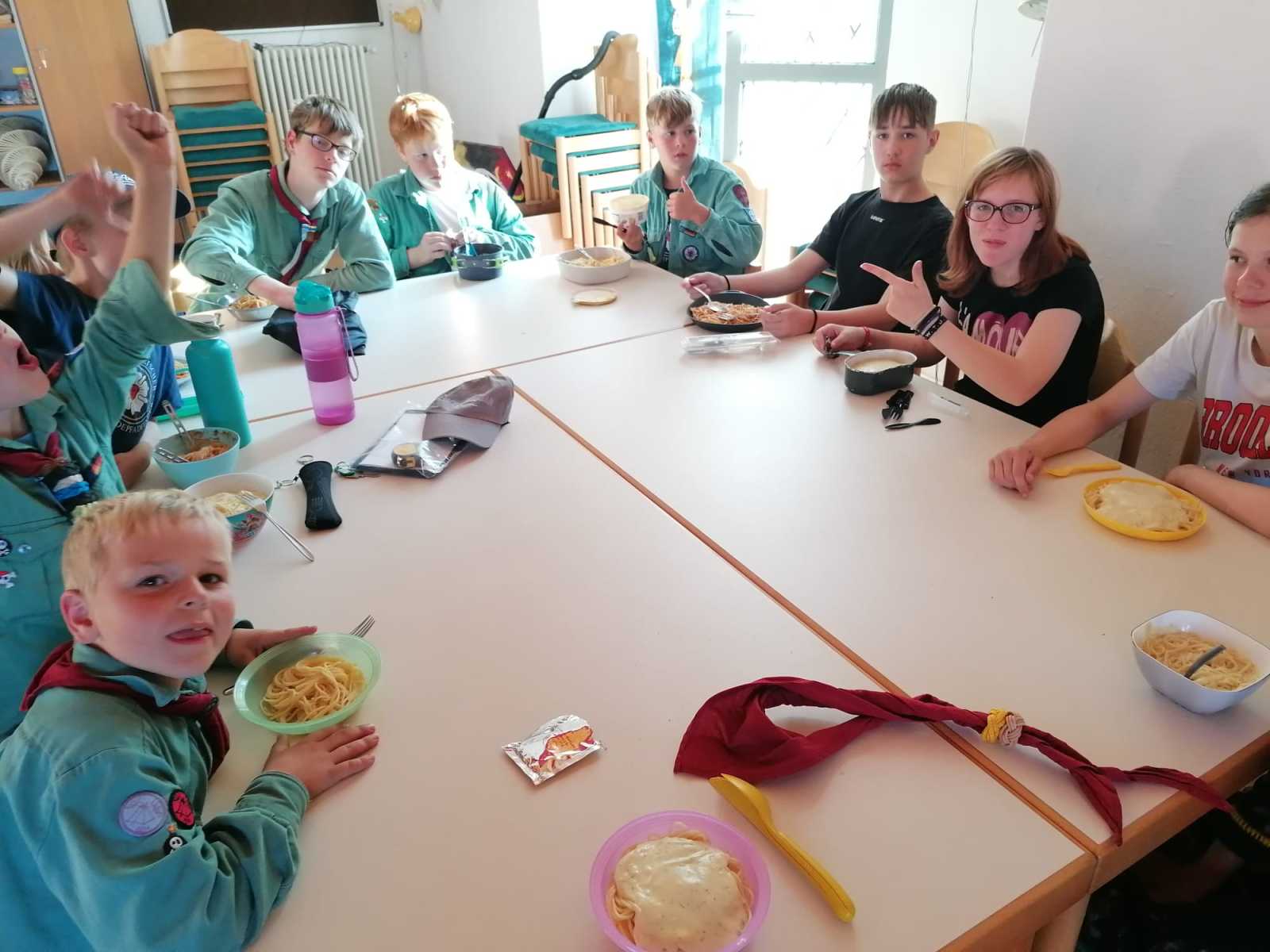Die Haiks sind wieder auf den Lagerplatz angekommen. Im Lagerfeuerkreis wurde fleißig berichtet 🔥 Seid gespannt, was die Kinder erzählen werden.